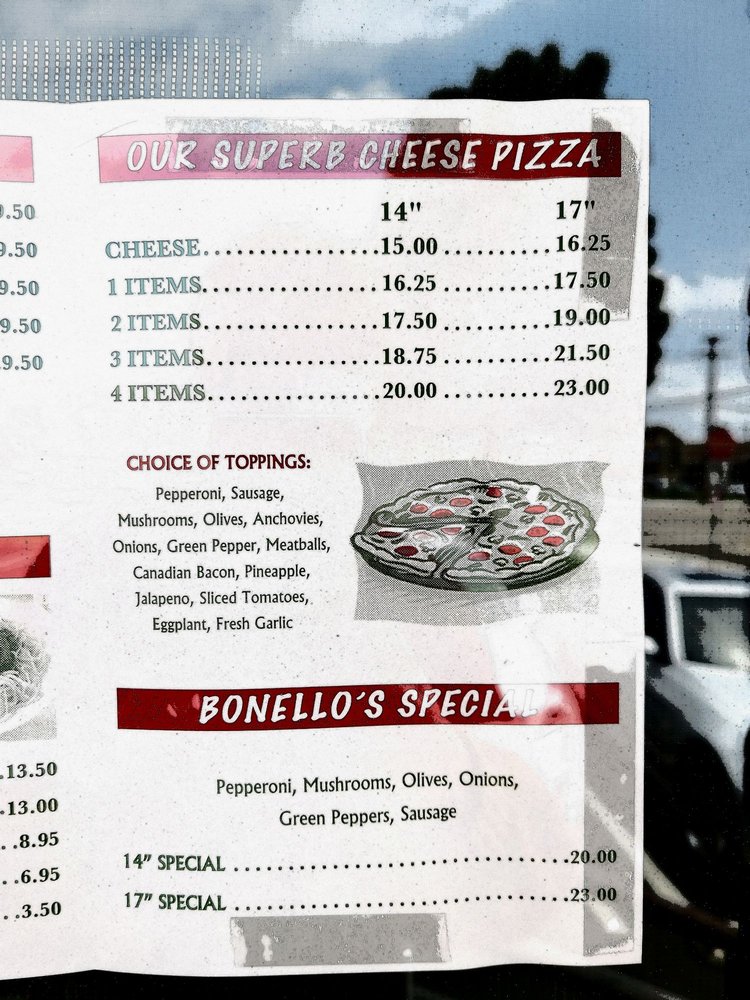 Bonello’s New York Pizza Menu